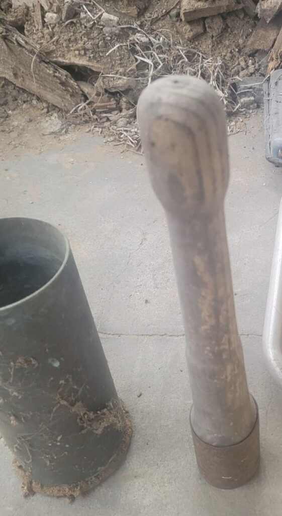 Granat ręczny F-1, oraz przedmiot przypominający granat trzonkowy. O ile ten drugi nie ma wartości bojowych, to ten pierwszy w przypadku eksplozji mógłby narobić sporo szkód. Żeliwna obudowa wypełniona jest trotylem. Sama obudowa jest ponacinana, aby w razie wybuchu granat rozprysł się na wiele odłamków – te mogą razić w promieniu 200 metrów.